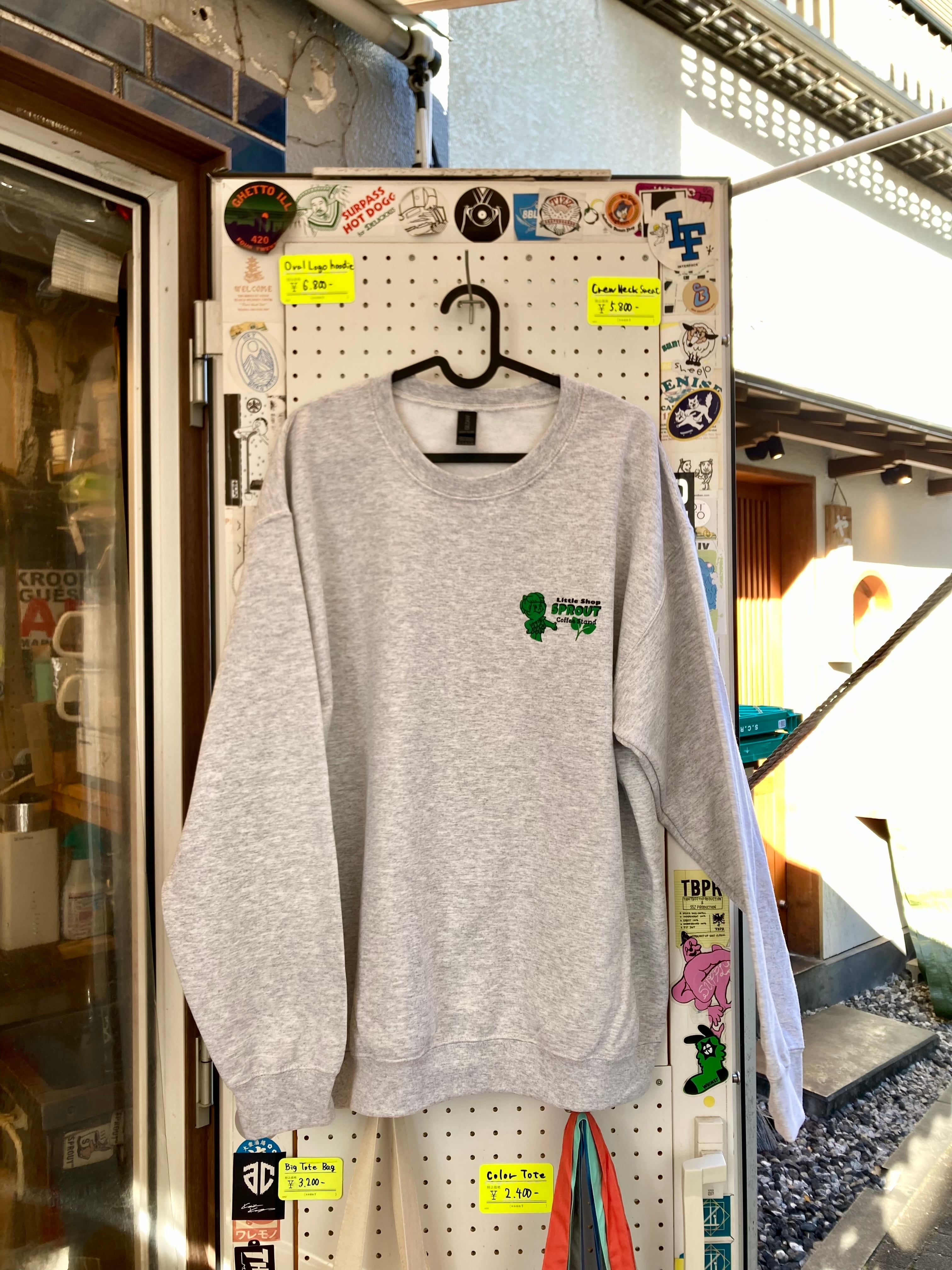 アッシュグレーボディにグリーンのプリントがお店のお土産スウェット的な感じに仕上がってます!